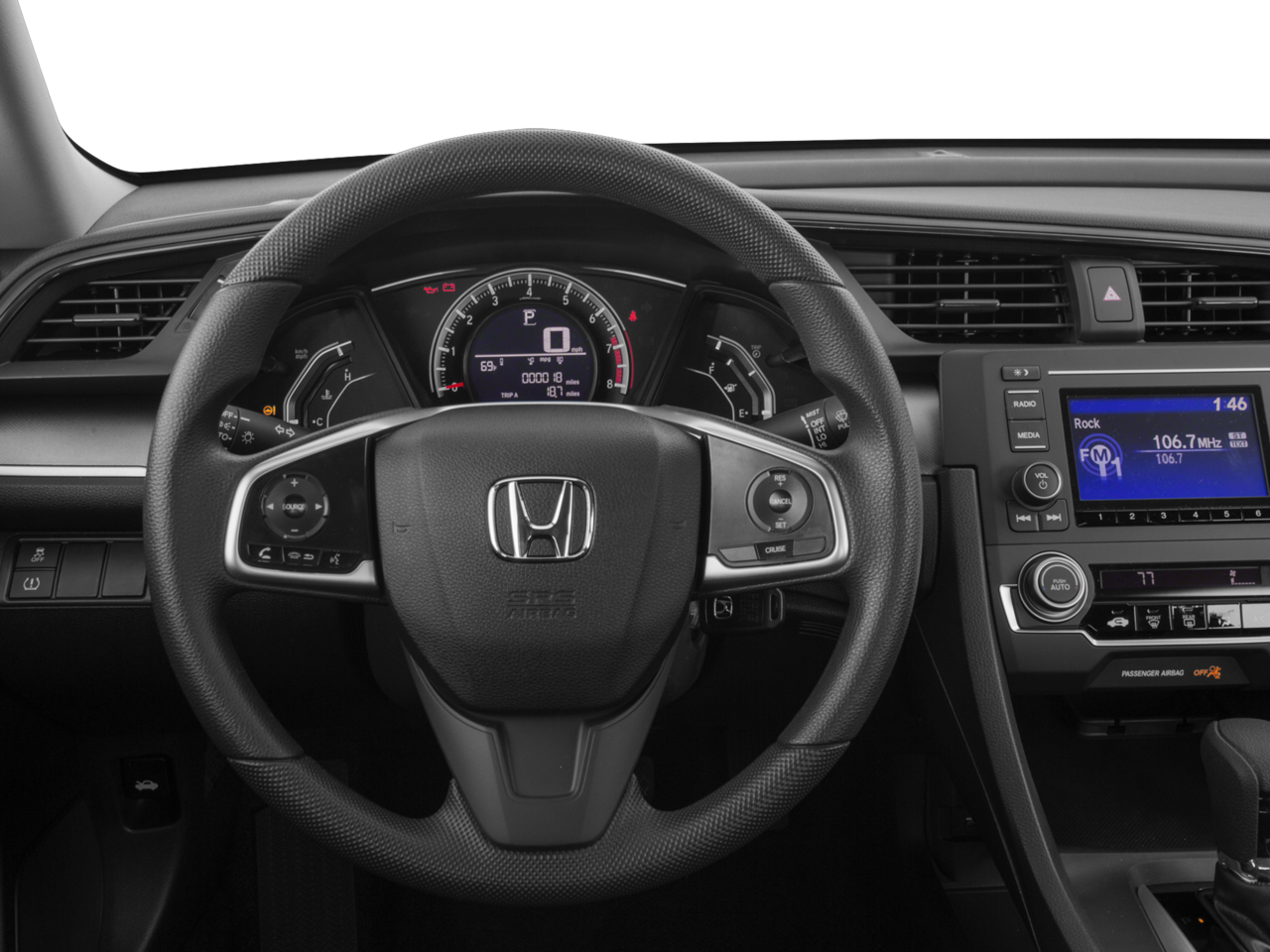 It's AutoCheck: 1 owner, assurance of single-owner history for peace of mind. See what's behind you with the back up camera on this unit. Bluetooth® technology is built into this Honda Civic, keeping your hands on the steering wheel and your focus on the road. This Honda Civic has a clean AutoCheck report. Quickly unlock this vehicle with keyless entry. Front wheel drive on this 2016 Honda Civic gives you better traction and better fuel economy. This small car projects refinement with a racy metallic gray exterior. This model has a 4 Cyl, 2.0L high output engine. The traction control system on this small car instantly senses tire slippage and executes minute power adjustments to maintain traction at all speeds. Stay safe with additional front side curtain airbags. It features cruise control for long trips. This small car is equipped with front air bags. Anti-lock brakes will help you stop in an emergency.