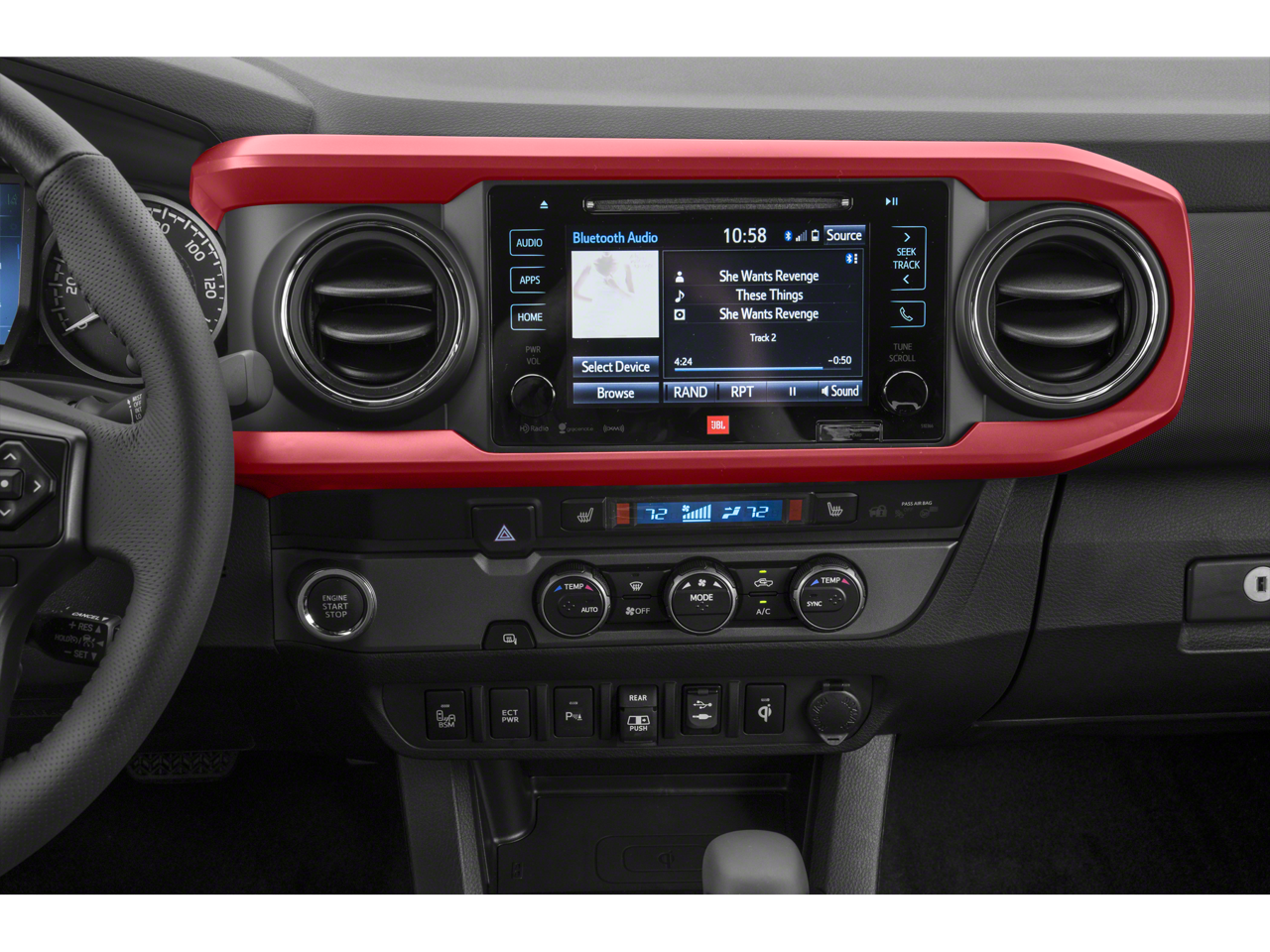 TRD Off Road Package: 16" X 7" Machined Contrast Alloy Wheels; Smartphone and Mobile Device Charger; Entune Premium Radio with AM/FM/CD/navigation/app Suite; Power Sliding Rear Window with Privacy Glass; Smart Key with Push Button Start; LED Daytime Running Lamps; Black Overfenders; 120V/400W Deck Mounted AC Power; Variable Intermittent Wipers; Auto-Dimming Inside Rearview Mirror with Compass; Engine Immobilizer; P265/70R16 AS Tires; Wide Angle Front Fog Lamps. Technology Package: Color Keyed Rear Bumper; Rear Parking Assist Sonar; Blind Spot Monitor with Rear Cross Traffic Alert. 5" Black Oval Tube Steps. All Weather Floor Liner and Door Sill Protector Package. Door Edge Guards. Mudguards. Door Sill Protectors. **Equipment listed is based on original vehicle build and subject to change. Please confirm the accuracy of the included equipment by calling the dealer prior to purchase.**
