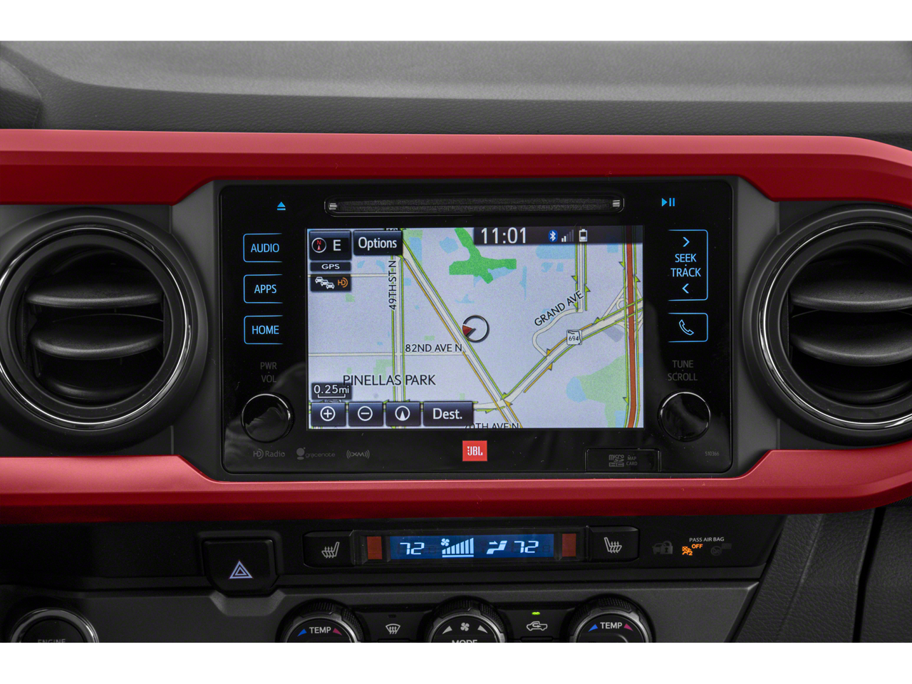 This unit's Cross-Traffic Alert: Safeguarding you from unexpected traffic when reversing. The installed navigation system will keep you on the right path. Bluetooth® technology is built into this model, keeping your hands on the steering wheel and your focus on the road. See what's behind you with the back up camera on this Toyota Tacoma. The rear parking assist technology on this 2019 Toyota Tacoma will put you at ease when reversing. The system alerts you as you get closer to an obstruction. This Toyota Tacoma enhances safety with a blind spot monitor, alerting drivers to potential dangers in adjacent lanes. This Toyota Tacoma shines with clean polished lines coated with an elegant white finish. The Toyota Tacoma has a V6, 3.5L high output engine. When you encounter slick or muddy roads, you can engage the four wheel drive on the vehicle and drive with confidence. Easily set your speed in this small pickup with a state of the art cruise control system. Increase or decrease velocity with the touch of a button.