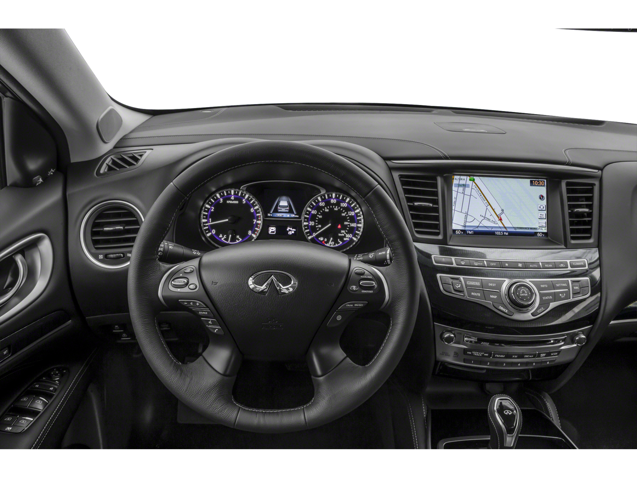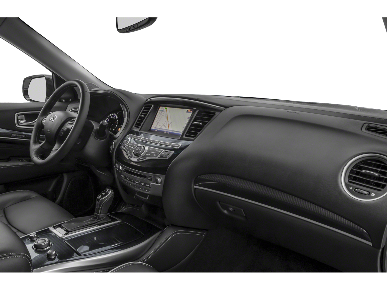Essential Package: Front and Rear Sonar Sensors (2 Front/2 Rear); Leather-Appointed Seat Trim; Rain-Sensing Front Windshield Wipers; Around View Monitor with Moving Object Detection; INFINITI InTouch with Navigation and InTouch Services; Illuminated Kick Plates. ProASSIST Package: Active Trace Control; High Beam Assist (HBA); Front and Rear Sonar Sensors (4 Front/4 Rear); Distance Control Assist; Auto Side Dimming Mirrors; Backup Collision Intervention (BCI); Lane Departure Prevention (LDP); Intelligent Cruise Control (full-Speed Range); Eco Pedal; Blind Spot Intervention (BSI); Lane Departure Warning (LDW). Cargo Package Essential: Rear Cargo Cover; Cargo Protector; Console Net; First Aid Kit. Illuminated Kick Plates. Splash Guards. **Equipment listed is based on original vehicle build and subject to change. Please confirm the accuracy of the included equipment by calling the dealer prior to purchase.**