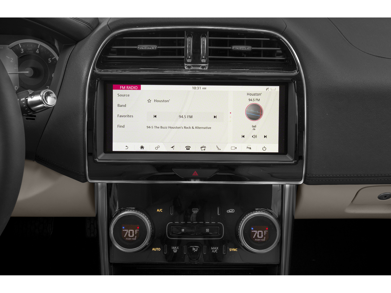 - Radio: Jaguar Sound System -inc: 10" Touch Pro, voice control, Apple CarPlay, Android Auto, InControl apps, dynamic volume control, Bluetooth connectivity and audio streaming, iPod integration, HD Radio and 2x USB and 12V sockets