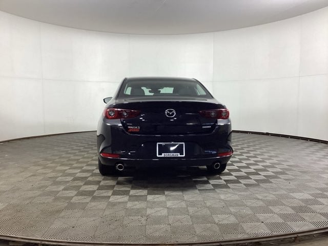 Borgmans Used Car Center of Grand Rapids brings you this low-mileage, jet black mica 2023 Mazda3 2.5 S Sedan, a four door car equipped with a responsive 2.5-liter Skyactiv-G engine producing 191 horsepower and 186 lb-ft of torque, paired with front-wheel drive and a smooth 6-speed automatic transmission for agile performance and efficiency around 31 MPG combined. It seats five passengers comfortably on cloth upholstery, with a 107.3-inch wheelbase, 13.2 cubic feet of trunk space, and a curb weight of about 3,126 pounds, riding on 16-inch alloy wheels. Modern conveniences include adaptive cruise control with stop-and-go, rain-sensing automatic wipers, and the Mazda Connect infotainment system featuring an 8.8-inch display, Apple CarPlay, Android Auto, Bluetooth®, and an 8-speaker audio setup