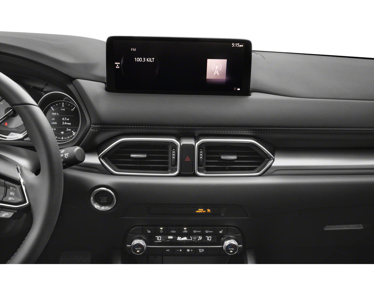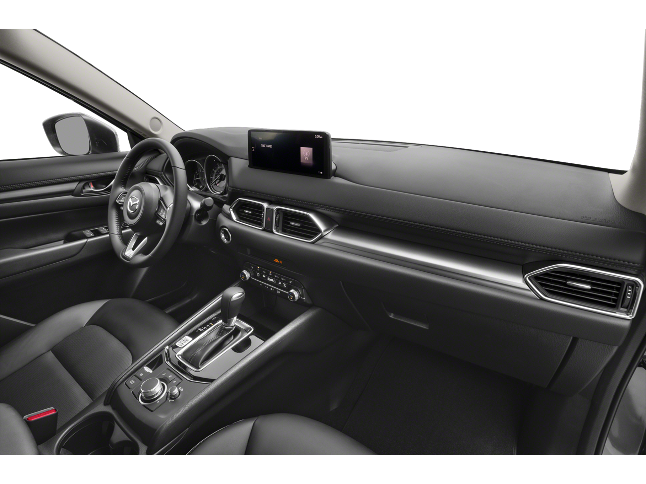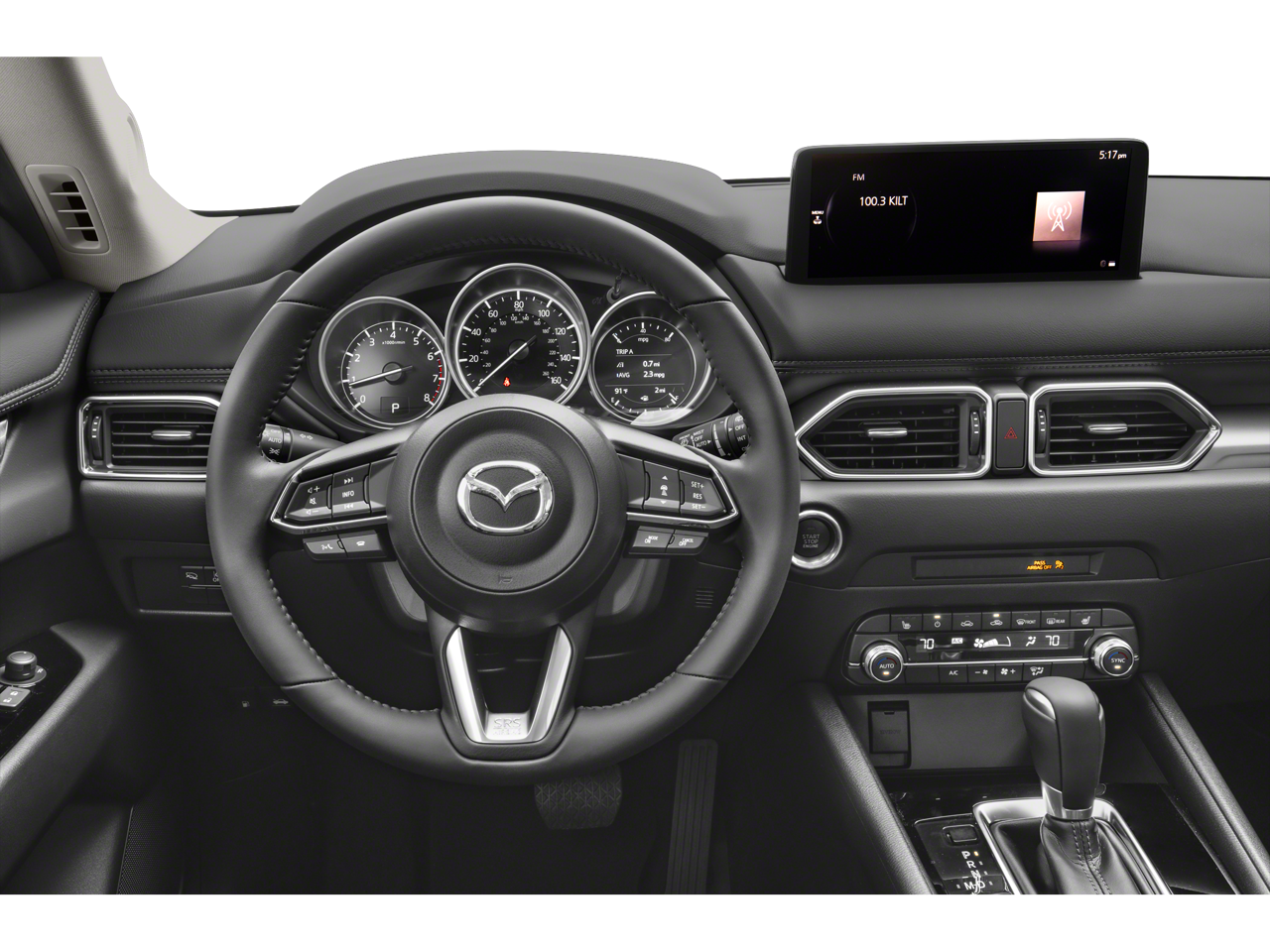Start the vehicle from inside with remote start. See what's behind you with the back up camera on this unit. This model features a hands-free Bluetooth® phone system. Lane Keep Assist in this Mazda CX-5 helps maintain safe driving by gently steering to stay within the lane. This unit enhances safety with a blind spot monitor, alerting drivers to potential dangers in adjacent lanes. This Mazda CX-5 offers Automatic Climate Control for personalized comfort. The leather seats in this vehicle are a must for buyers looking for comfort, durability, and style. Apple CarPlay: Seamless smartphone integration for this 2025 Mazda CX-5 - stay connected and entertained on the go! This small suv comes equipped with Android Auto for seamless smartphone integration on the road. Quickly unlock the vehicle with keyless entry. Maintaining a stable interior temperature in this unit is easy with the climate control system. This unit has an elegant black exterior finish.