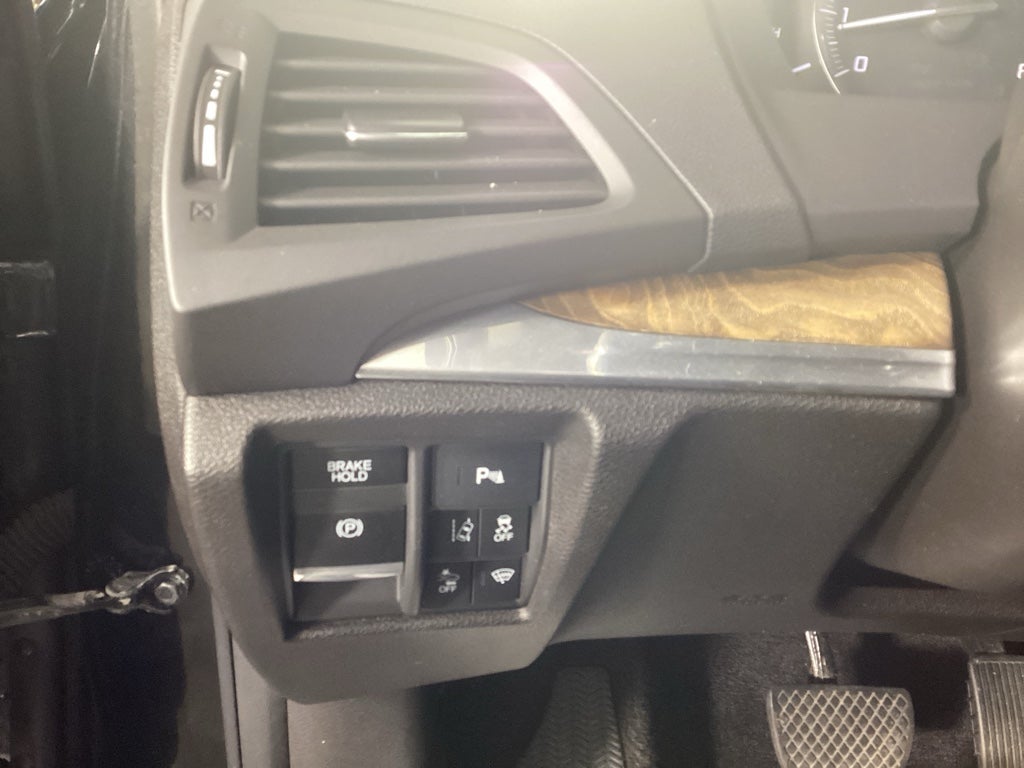 Inside, perforated leather-appointed seating features heated front buckets and second-row captain's chairs with a center console, comfortably seating six passengers alongside tri-zone climate control and a remote start system. Cargo space measures 14.9 cubic feet behind the third row, expanding for family versatility, making this MDX a refined choice for premium midsize SUV buyers seeking comfort and capability