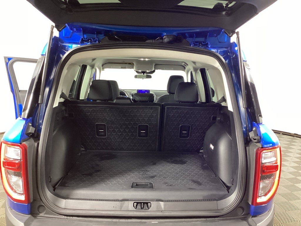 Borgmans Used Car Center of Grand Rapids brings you this low-mileage, velocity blue 2022 Ford Bronco Sport Big Bend 4X4, a four door SUV with the 1.5L EcoBoost turbocharged 3‑cylinder engine and four‑wheel drive is a compact SUV designed to blend everyday comfort with light off‑road capability and practical towing and tech features, offering 5‑passenger cloth seating suited to both commuting and outdoor use. The Class II Trailer Tow Package increases utility for small trailers and recreational gear when properly equipped, while the Convenience Package adds heated front seats, an 8‑way power driver seat, a wireless charging pad, and a Securicode keyless entry pad for added comfort and usability. SYNC 3 with an 8‑inch touchscreen serves as the central hub for audio, phone, apps, and smartphone integration, using a straightforward interface and voice controls to help manage calls, media, and navigation apps on the move. Ford Co‑Pilot360 further enhances this model with key driver‑assist technologies—such as automatic emergency braking, lane‑keeping assistance, and blind‑spot monitoring—to support driver awareness and safety in daily driving.