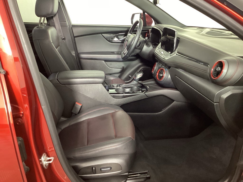 Borgmans Used Car Center of Grand Rapids brings you this loaded, radiant red tintcoat 2024 Chevy Blazer RS AWD, a four door SUV with a 3.6L V6 engine and all-wheel drive delivers spirited performance and sure-footed handling for dynamic drives, comfortably seating five in a premium cabin with perforated leather upholstery. Standout luxury touches include a power panoramic sunroof that brightens the interior, a Bose 8-speaker stereo for immersive audio, and an Infotainment 3 system with a 10.2-inch touchscreen featuring built-in navigation for seamless connectivity. The Driver Confidence II Package enhances safety with advanced aids like adaptive cruise control, forward collision alert, lane keep assist, and enhanced automatic emergency braking, while the Enhanced Convenience Package adds upscale perks such as a heated steering wheel, wireless charging, a power liftgate, and ambient interior lighting to elevate everyday comfort and convenience.