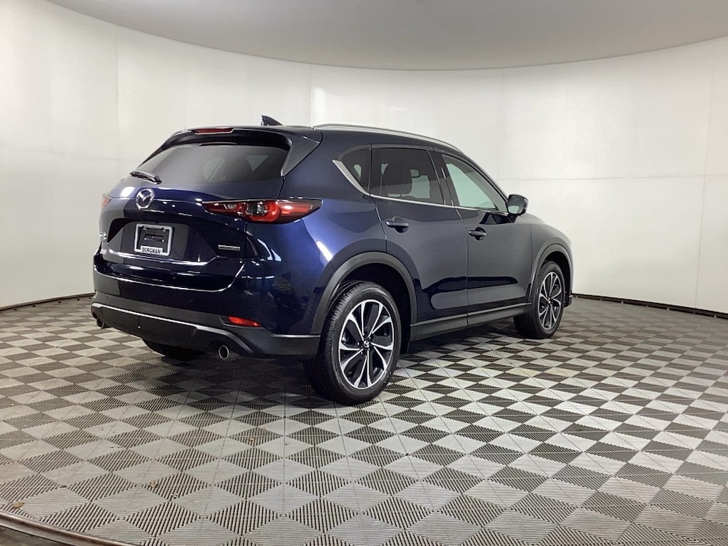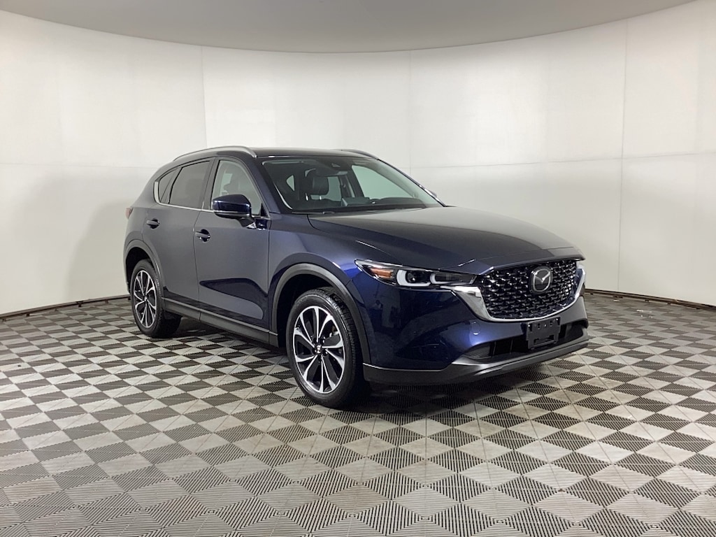 Borgman’s Used Car Center of Grand Rapids brings you this well-equipped, blue 2023 Mazda CX-5 2.5 S Premium, a four door SUV that seats five passengers and is equipped with a 2.5-liter SkyActiv-G four-cylinder engine producing 187 horsepower and 186 lb-ft of torque, paired with all-wheel drive for confident handling in various conditions. The Premium trim comes with perforated leather-appointed seating, heated front bucket seats, and a power moonroof, offering a blend of comfort and luxury. Inside, the MazdaConnect system provides an intuitive infotainment interface, and music playback from a connected USB device is supported. The interior also features a spacious, well-crafted design, ensuring both driver and passengers enjoy a pleasant experience. Key features for the Premium trim include Mazda Intelligent Drive Select (Mi-Drive) with selectable Normal, Off-Road, and Sport modes, adaptive LED headlights, 19-inch aluminum alloy wheels, and additional drive-focused technologies. Standard advanced safety systems include adaptive cruise control, lane departure warning, blind spot monitoring, and smart brake support, contributing to the vehicle’s high safety ratings. The SUV blends practical utility—such as rear cargo space and comfortable seating for five—with refined details like power-adjustable, perforated leather seating and dual-zone climate control.